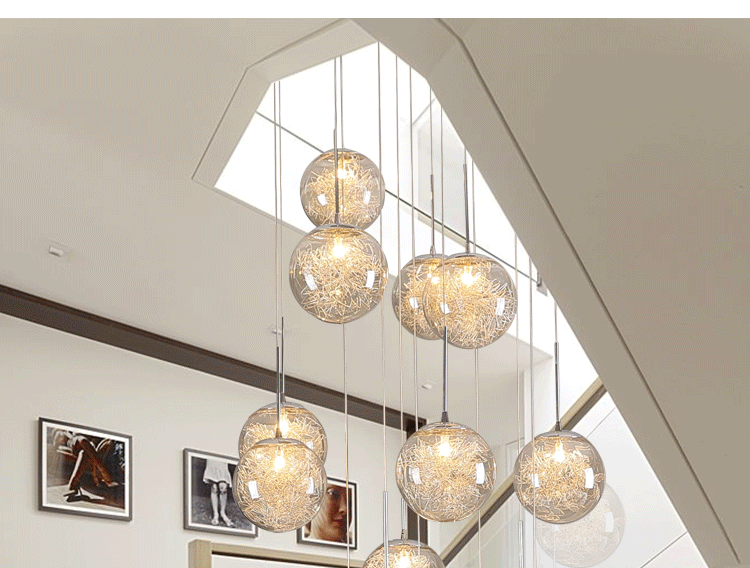 Дуплекс лестничный светильник Светодиодный Люстра для гостиной столовой стеклянный шар вилла вращающаяся полая лестница длинная G4 Подвесная лампа