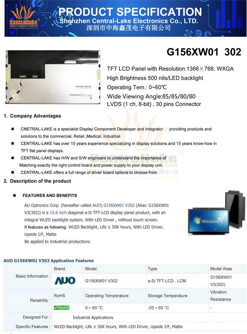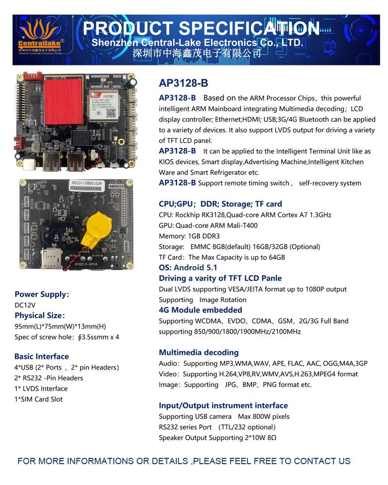Элементы этой ссылки включают в себя продукты как удар: 1 шт.-ЖК-панель (модель: G156XW01 V302) Материнская плата 1 шт. (модель: AP3128-B) 1 шт.-LVDS кабель (Длина: 250 мм) 1 шт.-светодиодный провод с подсветкой (длина: 350 мм) Не включает в себя: источник питания; Модуль 4G