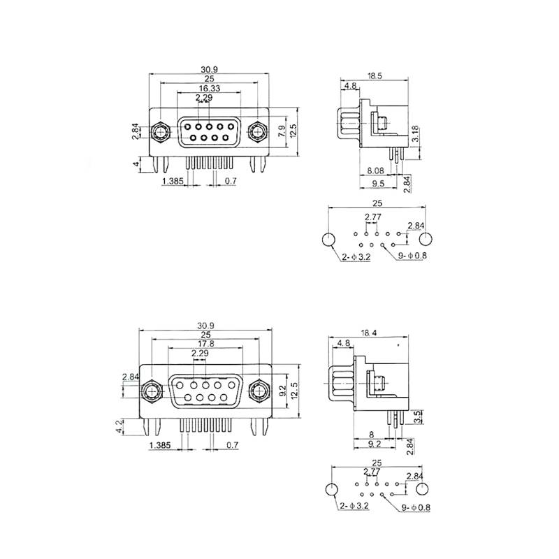 Этот DB9 9 контактов двойной соединитель ряда, PCB поверхностного монтажа, используется в качестве компьютерного интерфейса связи.