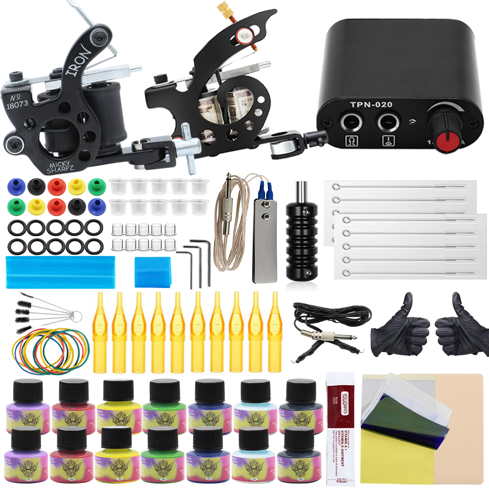 Набор для тату EMALLA, полный комплект для тату-машины, набор для тату-пистолета с тату-иглами, чернила, источник питания, набор инструментов для макияжа