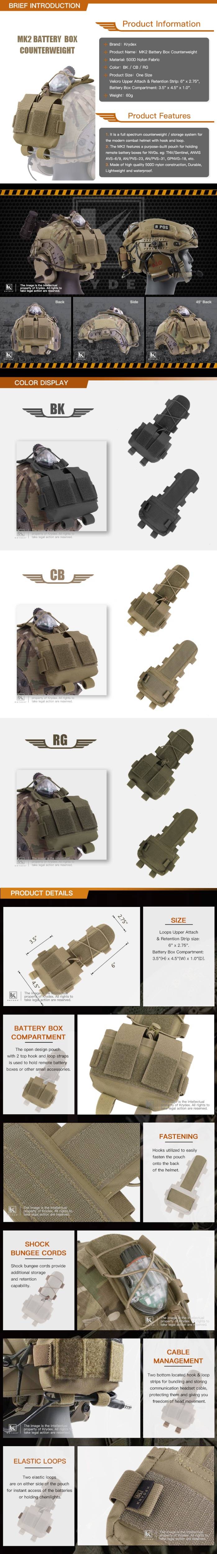 Тактический Аккумулятор KRYDEX MK2, чехол, GPNVG-18, коробка с противовесом для Боевого Шлема, аксессуар, система хранения