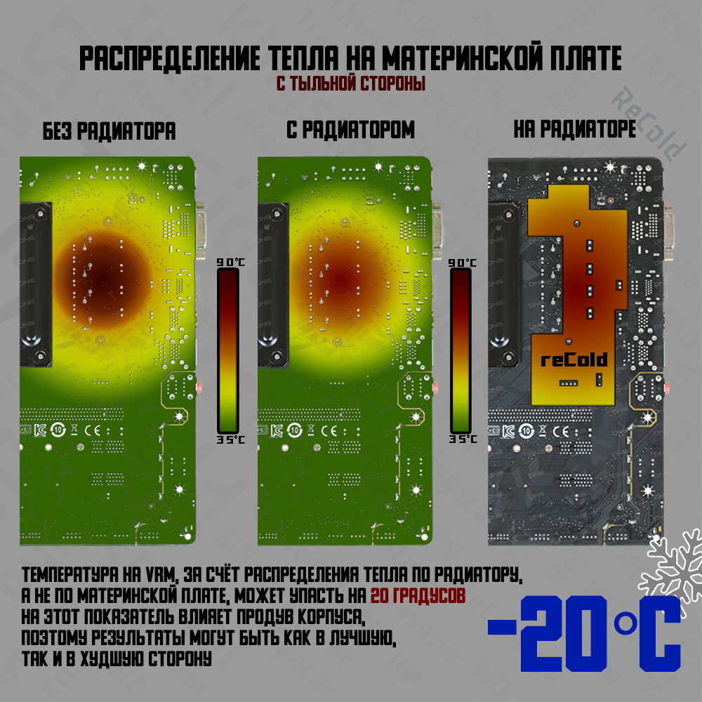 Алюминиевый радиатор ReCold для охлаждения мосфетов модуля регулирования напряжения процессора (VRM). Подходит для материнских плат: