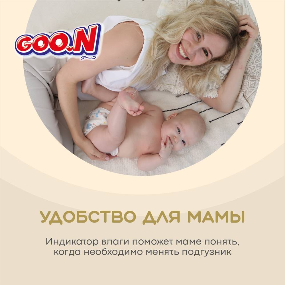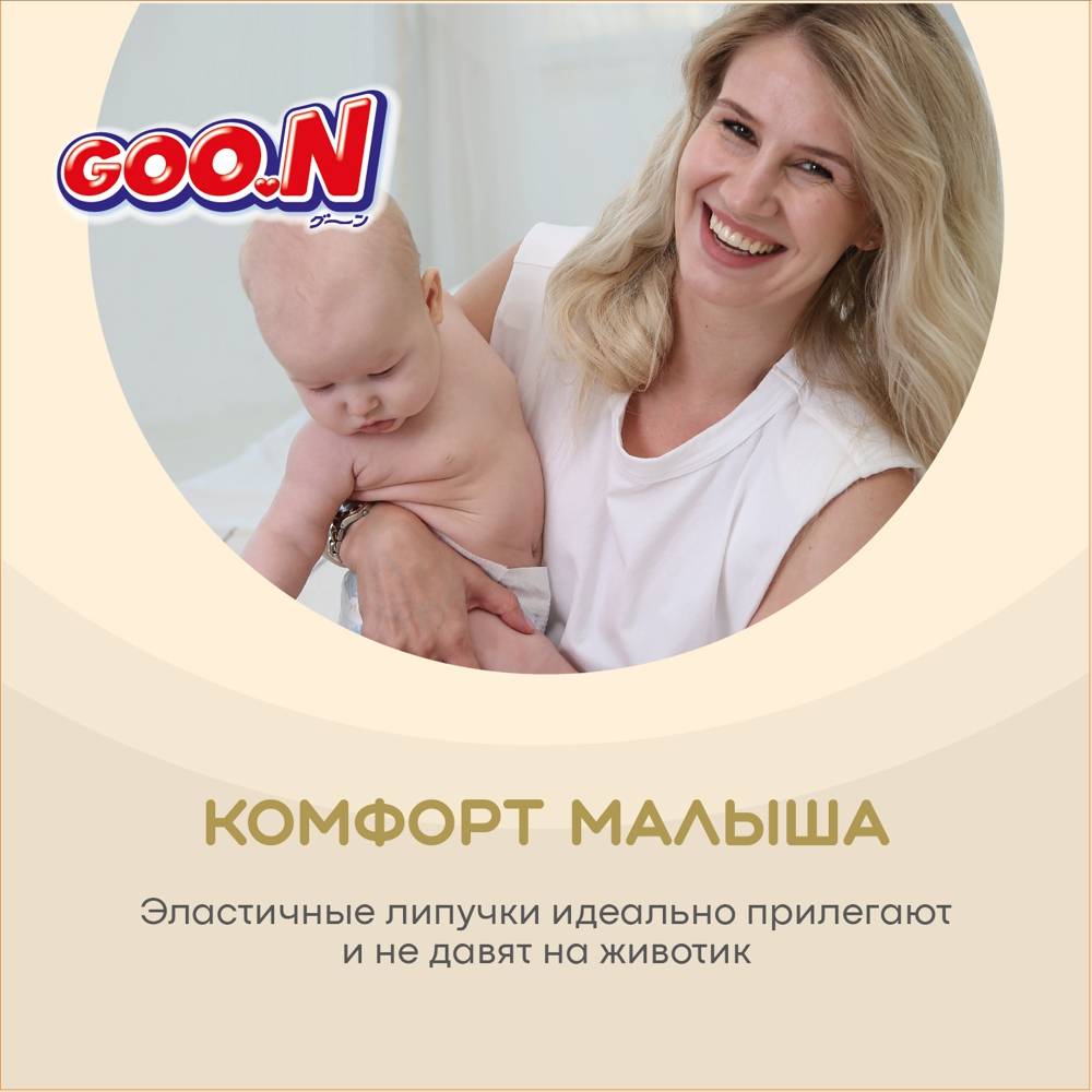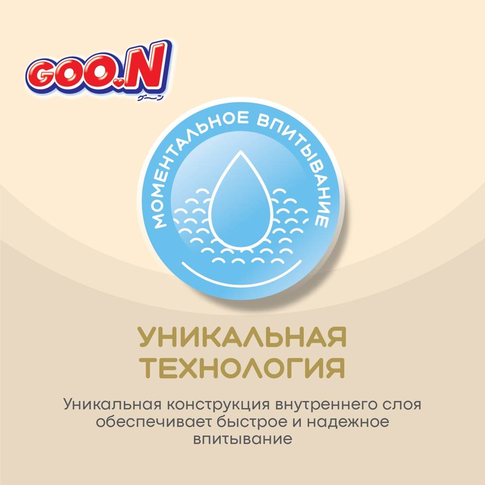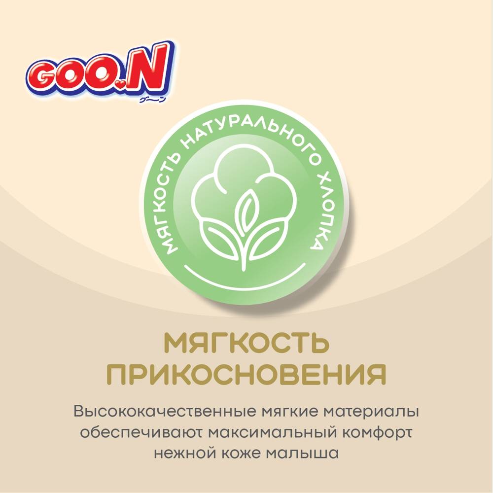 Представляем новую линейку подгузников и трусиков Goo.N! Новая линейка Goo.N Soft –продукция все такого же превосходного качества из высокотехнологичных материалов, созданная при помощи инновационной технологии, благодаря которой влага впитывается ЕЩЁ быстрее и удерживается внутри ЕЩЁ надежнее. Новшества Goo.N Soft: 1) Технология каналов - увеличивает скорость впитывания и способствует равномерному распределению влаги; 2) Рельефный внутренний слой – уменьшает площадь поверхности соприкосновения подгузника с кожей ребенка, улучшает воздухообмен внутри подгузника, тем самым предотвращает возникновение опрелостей. 3) Воздухообмен 360°- подгузник «дышит» по всей поверхности. Даже после мочеиспускания, уникальные дышащие материалы быстро выводят влажный воздух наружу и оставляют кожу малыша сухой и здоровой. 4) Эластичные липучки – позволяют индивидуально регулировать прилегание пояска подгузников, тем самым уменьшая риск протекания. 5) Милый дизайн – поможет сделать процесс замены подгузников веселым и познавательным! Что осталось по-прежнему: 1) Высококачественные мягкие материалы, которые дарят максимальный комфорт нежной коже малыша; 2) Мягкие двойные манжеты, бережно облегающие ножки малыша, и внутренние высокие бортики, которые дополнительно защищают от протекания. 3) Абсолютно гипоаллергенны и безопасны, не содержат лосьонов и отдушек; 4) Индикатор наполнения поможет маме понять, когда нужно заменить подгузник. Никогда еще подгузники не были такими комфортными и не оставались сухими так долго. Подгузники и трусики Goo.N Soft комфортны для малыша и удобны в использовании для мамы!