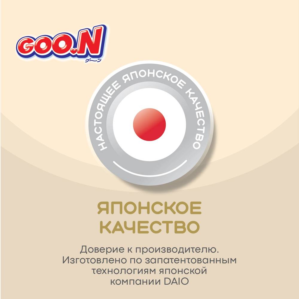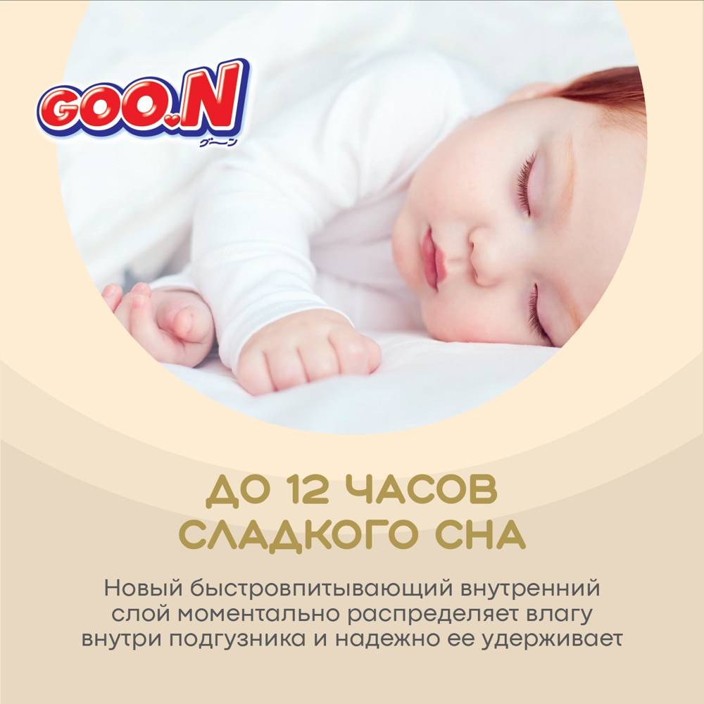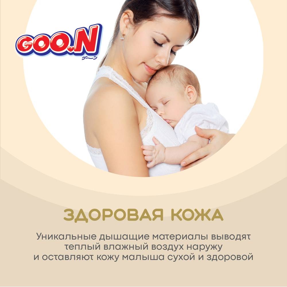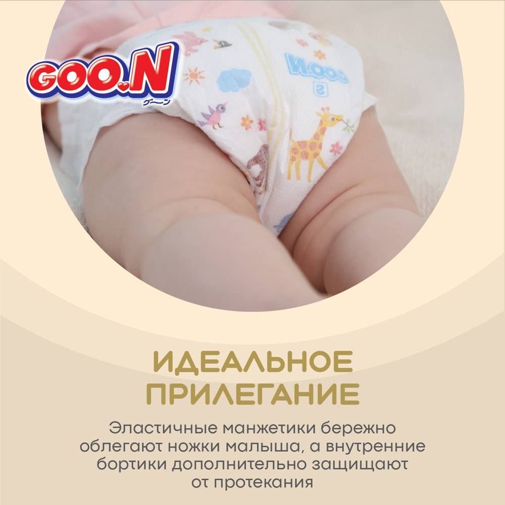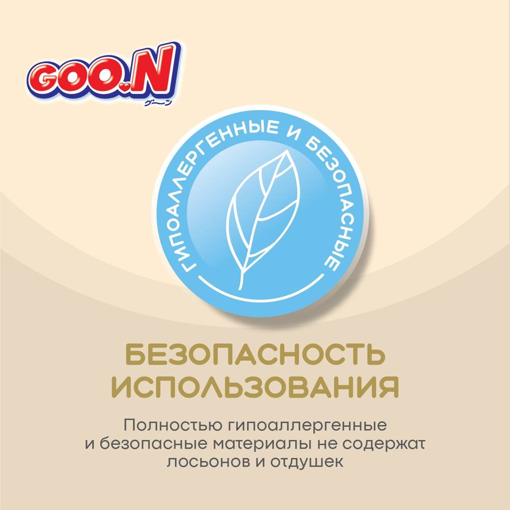 Представляем новую линейку подгузников и трусиков Goo.N! Новая линейка Goo.N Soft –продукция все такого же превосходного качества из высокотехнологичных материалов, созданная при помощи инновационной технологии, благодаря которой влага впитывается ЕЩЁ быстрее и удерживается внутри ЕЩЁ надежнее. Новшества Goo.N Soft: 1) Технология каналов - увеличивает скорость впитывания и способствует равномерному распределению влаги; 2) Рельефный внутренний слой – уменьшает площадь поверхности соприкосновения подгузника с кожей ребенка, улучшает воздухообмен внутри подгузника, тем самым предотвращает возникновение опрелостей. 3) Воздухообмен 360°- подгузник «дышит» по всей поверхности. Даже после мочеиспускания, уникальные дышащие материалы быстро выводят влажный воздух наружу и оставляют кожу малыша сухой и здоровой. 4) Эластичные липучки – позволяют индивидуально регулировать прилегание пояска подгузников, тем самым уменьшая риск протекания. 5) Милый дизайн – поможет сделать процесс замены подгузников веселым и познавательным! Что осталось по-прежнему: 1) Высококачественные мягкие материалы, которые дарят максимальный комфорт нежной коже малыша; 2) Мягкие двойные манжеты, бережно облегающие ножки малыша, и внутренние высокие бортики, которые дополнительно защищают от протекания. 3) Абсолютно гипоаллергенны и безопасны, не содержат лосьонов и отдушек; 4) Индикатор наполнения поможет маме понять, когда нужно заменить подгузник. Никогда еще подгузники не были такими комфортными и не оставались сухими так долго. Подгузники и трусики Goo.N Soft комфортны для малыша и удобны в использовании для мамы!