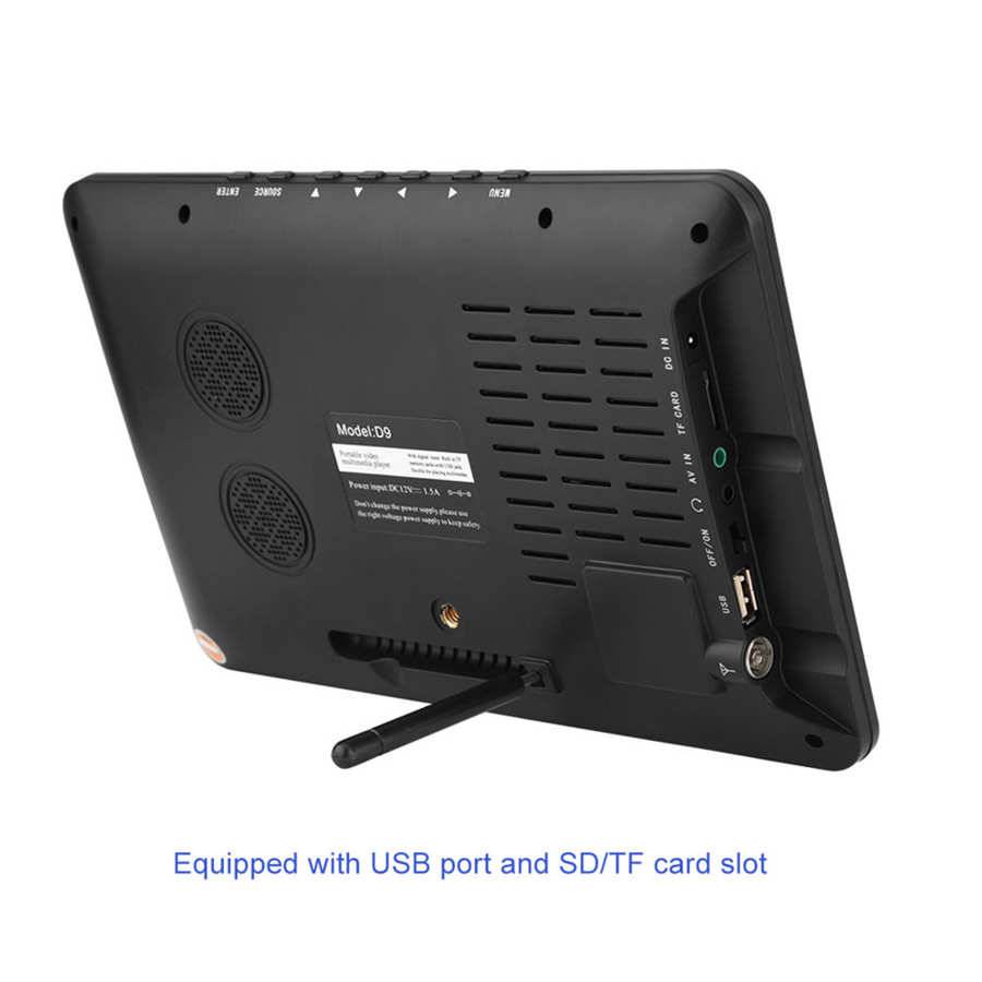 This is a portable digital TV with USB port,Storage / Memory card slot. You can insert a USB disk or Storage / Memory card and play the videos you download previously. This portable TV supports 1080P HD video and the 2 built-in speakers will provide high definition stereo sound. Small size and convenient to carry,give you better watching experience.