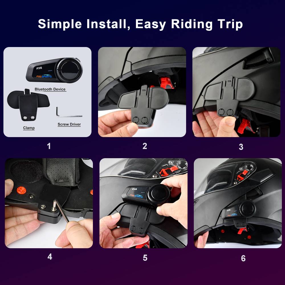 【 Поддержка 6 всадников групповое соединение 】полный дуплекс вызов для группы мотоциклов гарнитуры системы, поддержка нескольких людей одновременного вызова. Благодаря гарнитурам FX6 вы можете обеспечить безопасность и удобство рук, слушать музыку, получать gps-маршруты и получать голосовые команды по беспроводному каналу через Bluetooth, позволяя вам наслаждаться гонок.