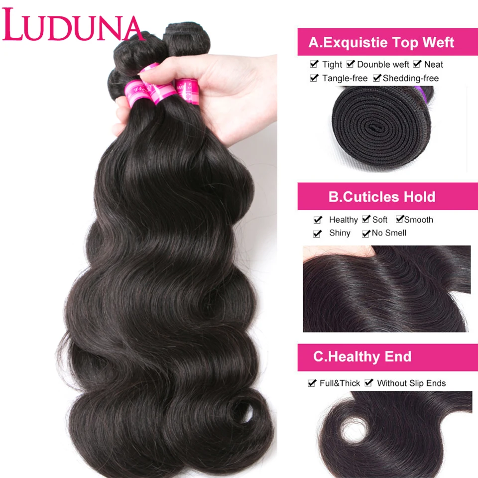 Luduna волнистые пряди с закрытием бразильские волосы пряди с закрытием человеческие волосы с пучком Remy волосы для наращивания