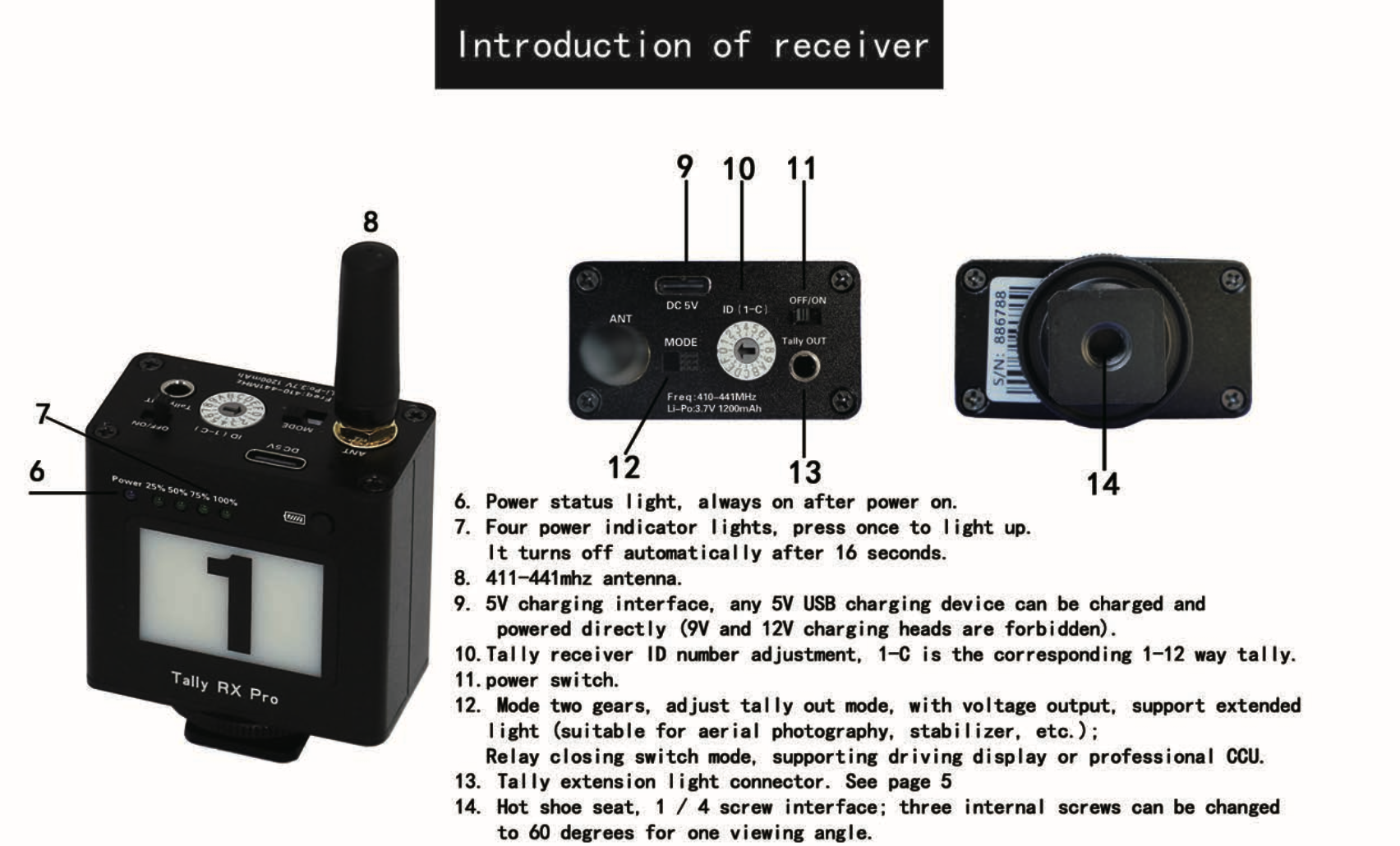 6 x Tally беспроводной профессиональный приемник (RX, No, 1,2,3,4,5,6)