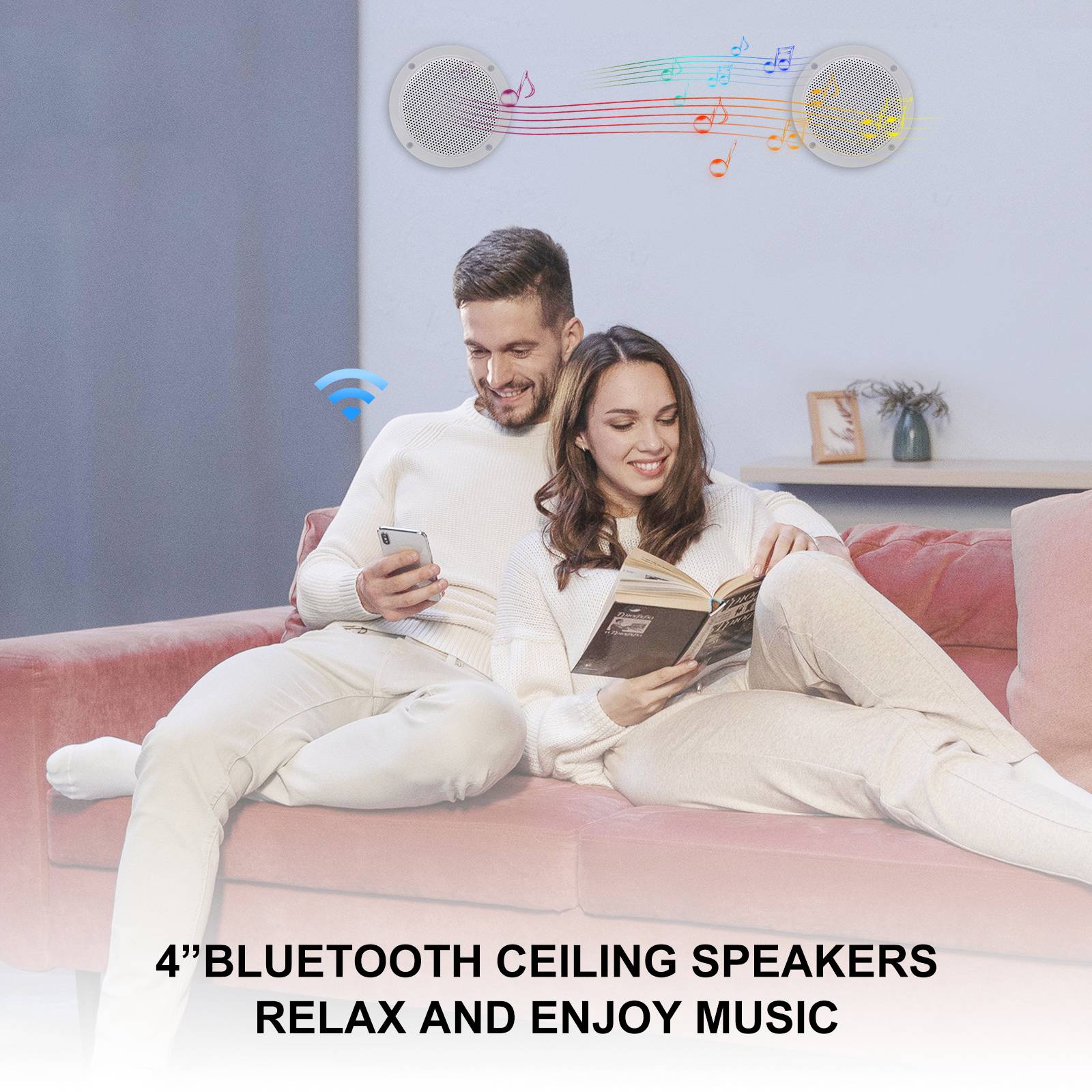 Универсальная совместимостьПотолочные колонки Bluetooth с компактным профилем и стереозвуком. Совместим со всеми устройствами Bluetooth. Воспроизводите любимую музыку со своего смартфона, планшета или другого устройства Bluetooth на кухне, в спальнях и ванной комнате с помощью простого и удобного сопряжения | Полный комплект-простая установкаЕго можно установить в ту же потолочную полость, что динамик установлен или спрятан в любом шкафу или ящике. Нет необходимости в прямой видимости, так как вы можете контролировать громкость, пропускать треки и включать и выключать с помощью Bluetooth устройства (например, мобильный телефон/планшет). | Морской класс и функцииКолонки с высоким морским классом IP66 также имеют функции защиты от соли, тумана, УФ-защиты, высокой термостойкости. Общий корпус распылителя выделенное покрытие, весь блок запечатан, и он также может играть идеальное качество звука в суровых условиях |