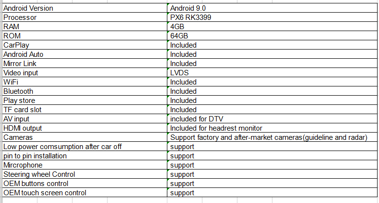 4. Включен HDMI выход для заднего монитора/AV для камер/LVDS в