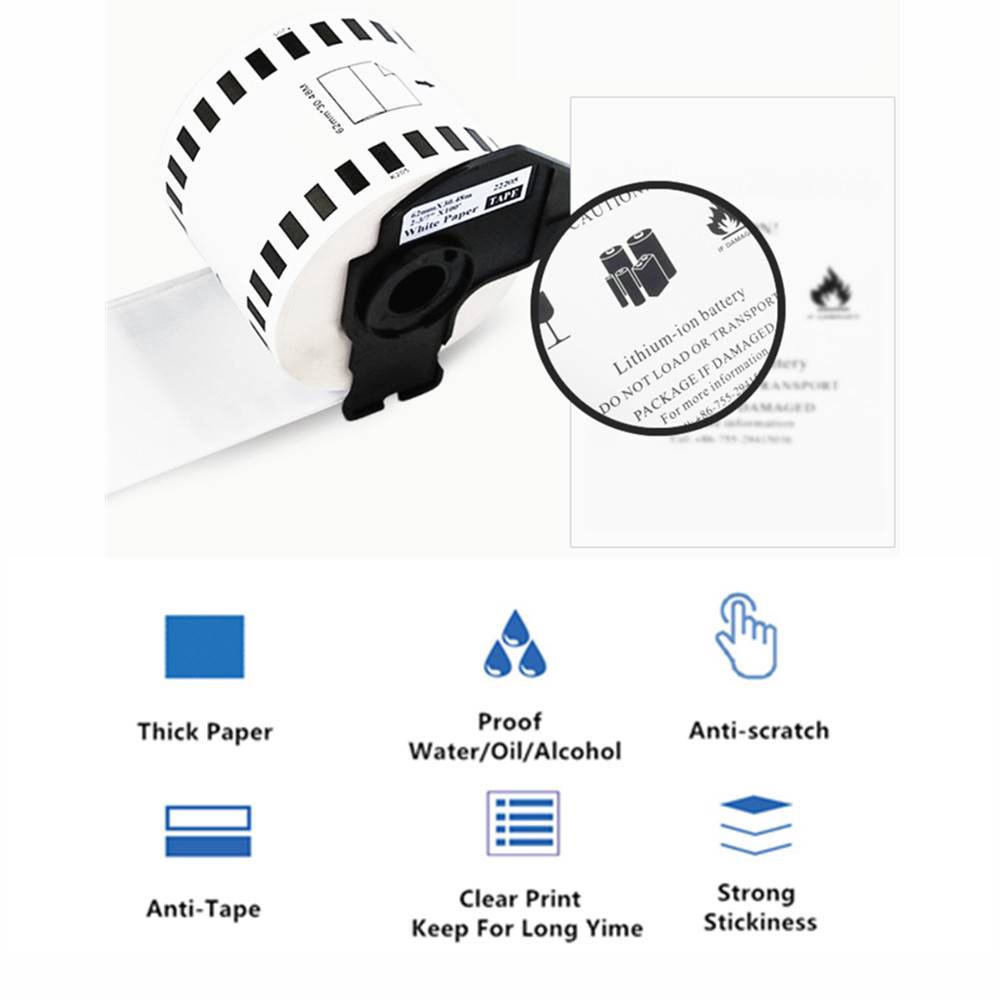 Совместимость DK-22205 термопластичной белой бумажной лентой с держателем