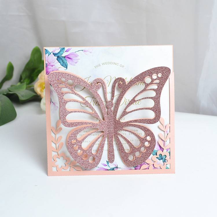 Карманный Стиль блестящая золотая лазерная резка Элегантные свадебные приглашения Quinceanera с блестящей летающей бабочкойПараметры
