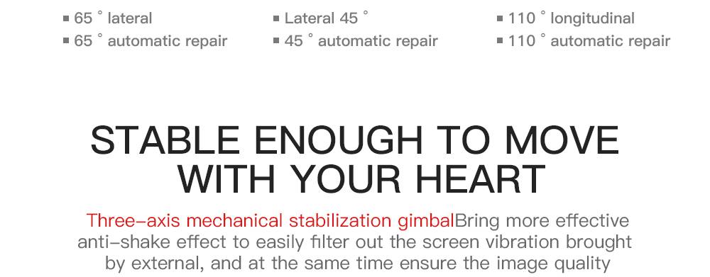 3-axis mechanical stabilization gimbal Bring more effective anti-shake effect to easily filter out the screen vibration brought by external, and at the same time ensure the image quality