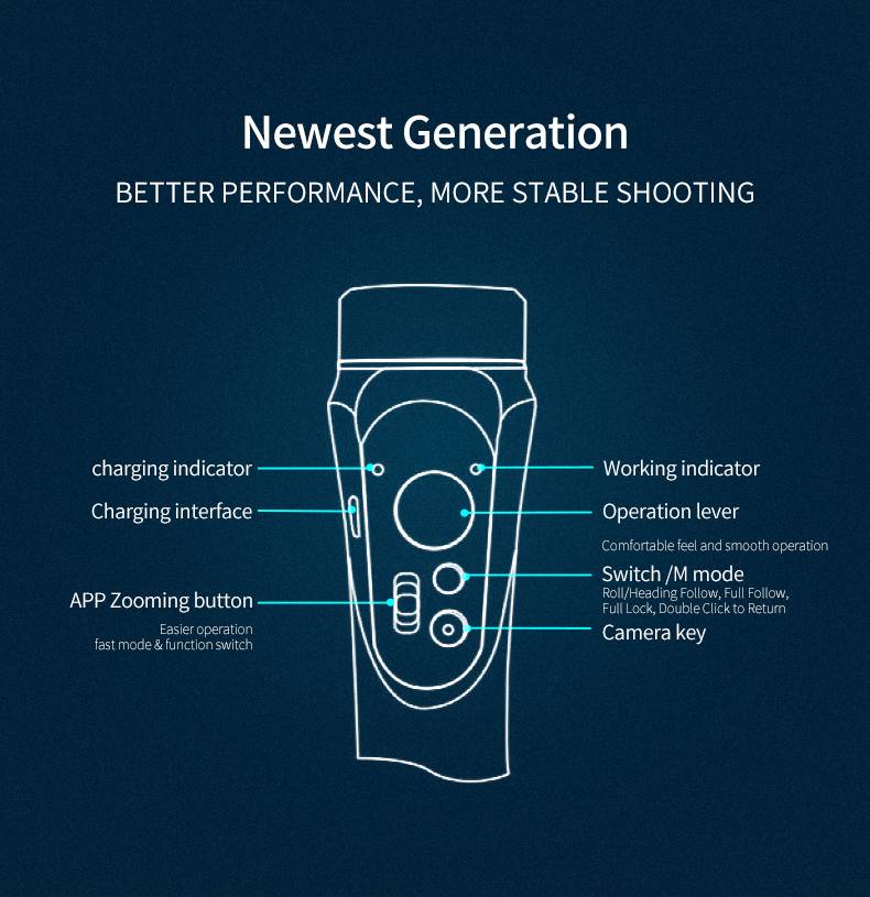 Легкое выравнивание и высокая грузоподъемность3-осевой электронный Противоударная система стабилизации помочь нам захват видео и фото еще более четкую и яркую передачу.