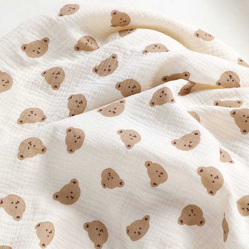 4 Layers Baby Muslin Cotton Printing Cartoon Bear Receiving Blanket Infants Ruffles Swaddle Wrap Newborn Sleepsack Quilt Bed Cover