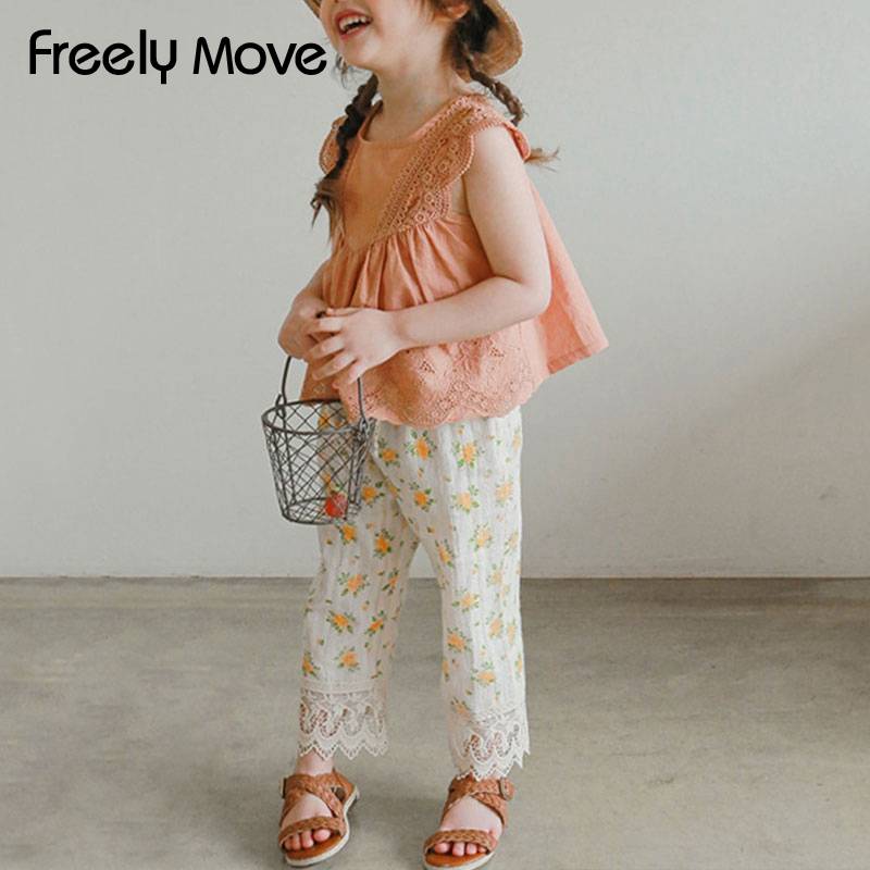 Наименование товара: свободная блузка для маленьких девочек; Новинка 2022 года; Летние хлопковые кружевные топы без рукавов с оборками; Детская блузка; Повседневная детская одежда с цветочным рисунком