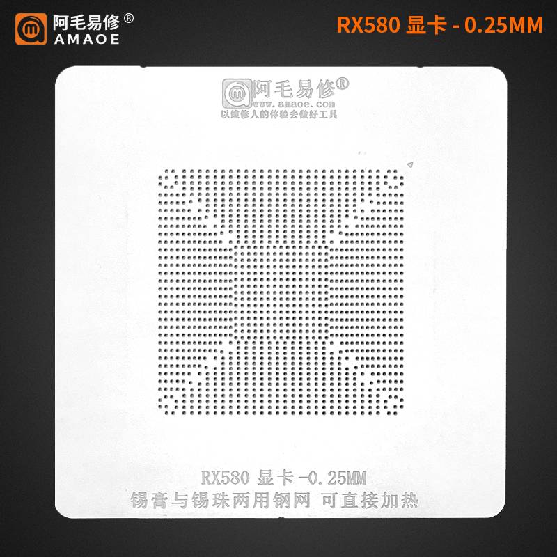 Amaoe RTX3060 RX580 BGA Reballing Stencil for GPU Graphics Card Chip Direct Heating 0.25mm with Location Plate Solder Tin Plant