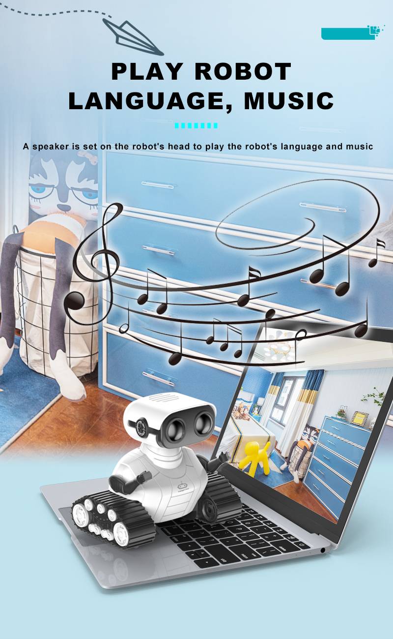 Светодиодный светильник будет поднят, как только вы включите робота, вы также можете закрыть его или дать ему мигать дистанционным управлением; голосовая функция-Включите робота, который начнет говорить с вами на своем родном языке, он также может спеть 3 песни, которые могут плавать на пульте дистанционного управления; Танковые треки-пусть робот движется вперед влево и вправо, когда он переключится в демонстрационный режим, он начнет танцевать.