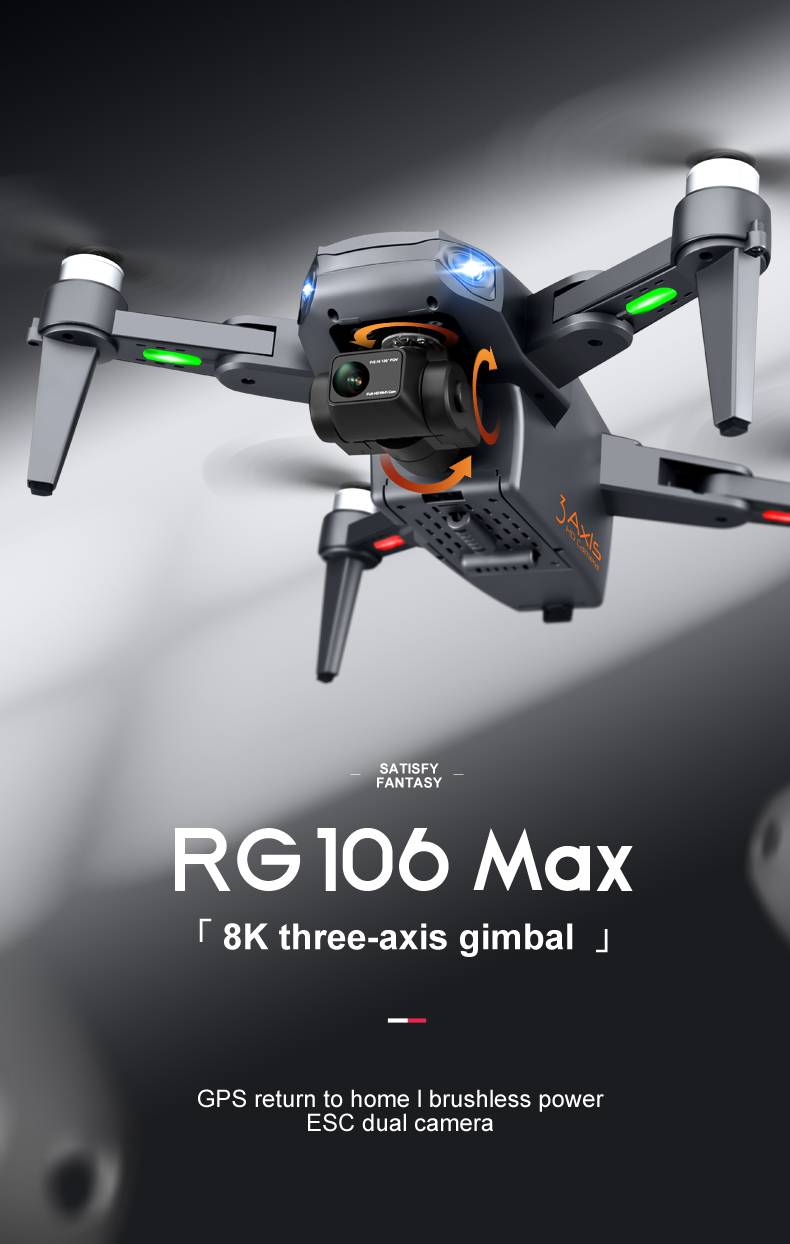 2022 Новый RG106 Drone 8k Двойная камера Профессиональные Дроны с GPS с 3-осевым бесщеточным вертолетом Rc 5G WiFi Fpv Дроны Квадрокоптер Игрушка