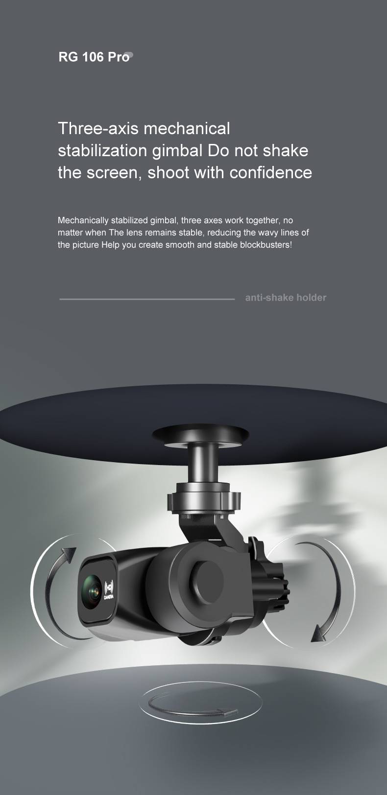 Камера: регулируемая камера 90 °. Само-стабилизируя электронный объектив стабилизации изображения