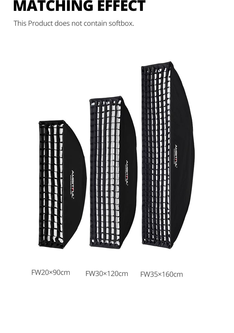 Примечание: сетка подходит только для софтбокса 22x90 см, 30x120 см, 35x160 см, другие размеры не подходят