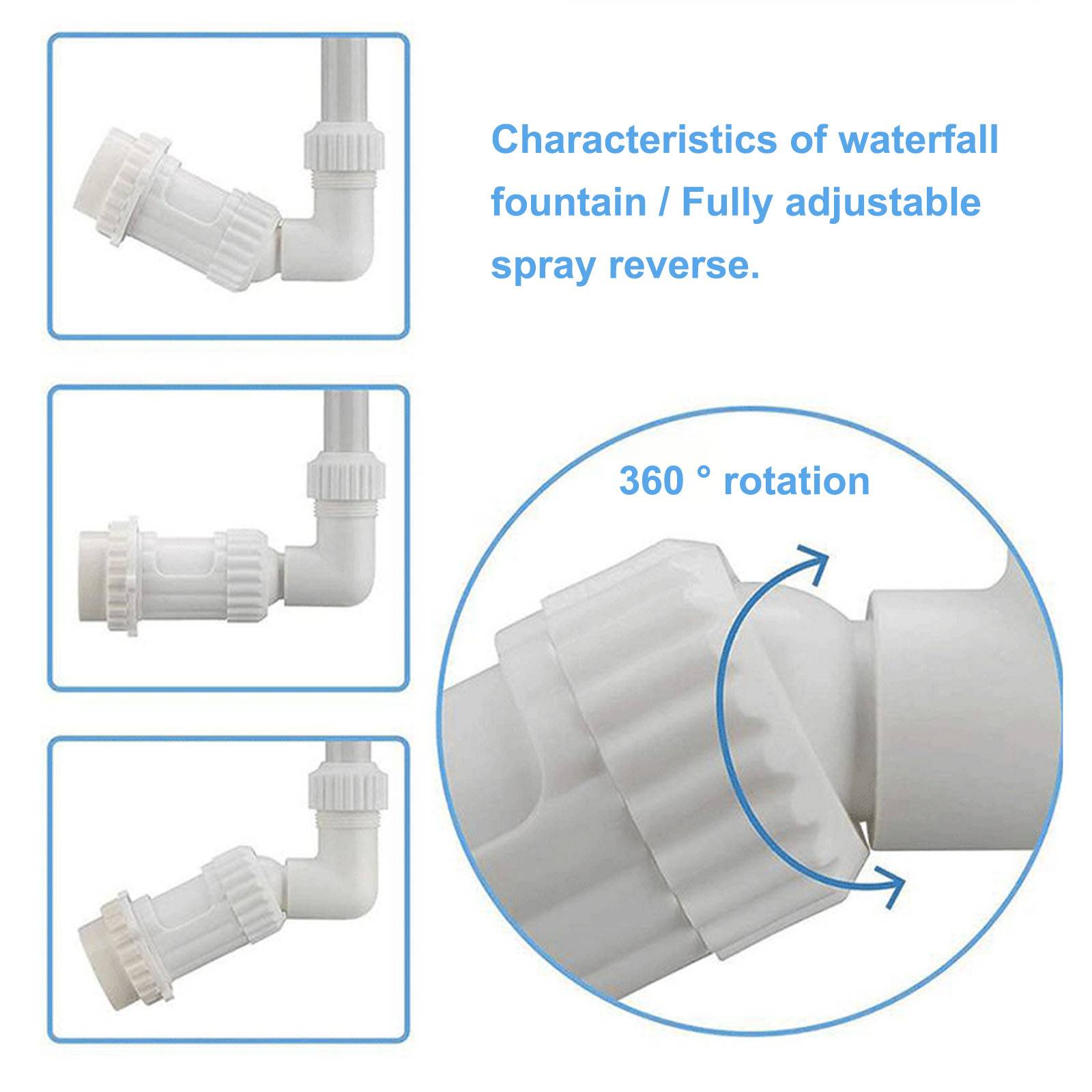 Регулируемая гибкость-легко устанавливать и снимать. Распыляет до высоты 14 ' /5 м (зависит от насоса; Требуется минимум 3/4 л.с.). Спрей для фонтана с водопадом регулируется в направлении. Вы можете отрегулировать в соответствии с реальной ситуацией. Также может работать без насоса.