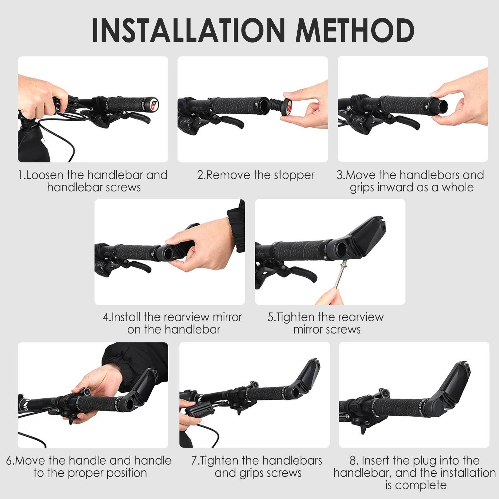 3. Установка без инструментов: Мы предоставляем шестигранный ключ с велосипедным зеркалом, вы можете разобрать и установить его без других инструментов.
