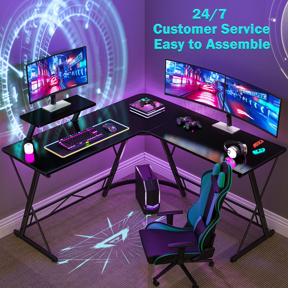 [Быстрая сборка и простая чистка]: сборка компьютерного стола в форме буквы L так же проста, как и ABC. Мы предоставим вам инструкции для легкого понимания, и если это не сработает, у нас есть 24/7 сервис для вашей помощи. Блестящий игровой стол L shape просто вытирает! В отличие от большинства игровых столов, наша черная версия не скользит, не царапается и легко чистится.