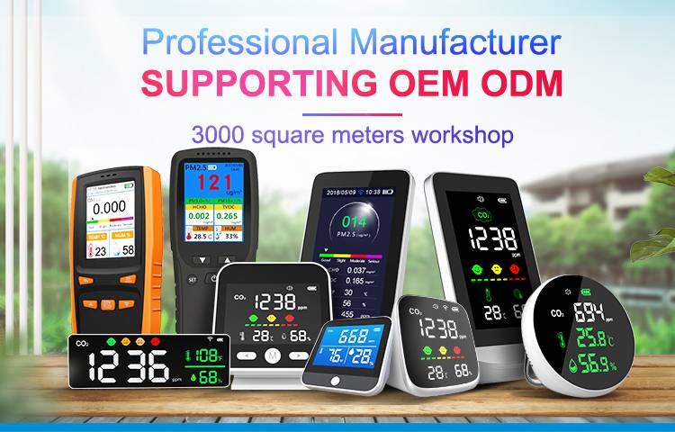 В настоящее время завод в основном производит и поставляет инфракрасный углекислый газ (CO2) монитор, отрицательный кислородный ионный детектор, озоновый метр, пыль PM2.5 монитор с TVOC и HCHO,NH3 метр, измеритель уровня шума, газовый анализатор, термометр и т. Д., которые прошли сертификацию CE, ROHS, PSE, Распространена по всему миру и была высоко оценена.