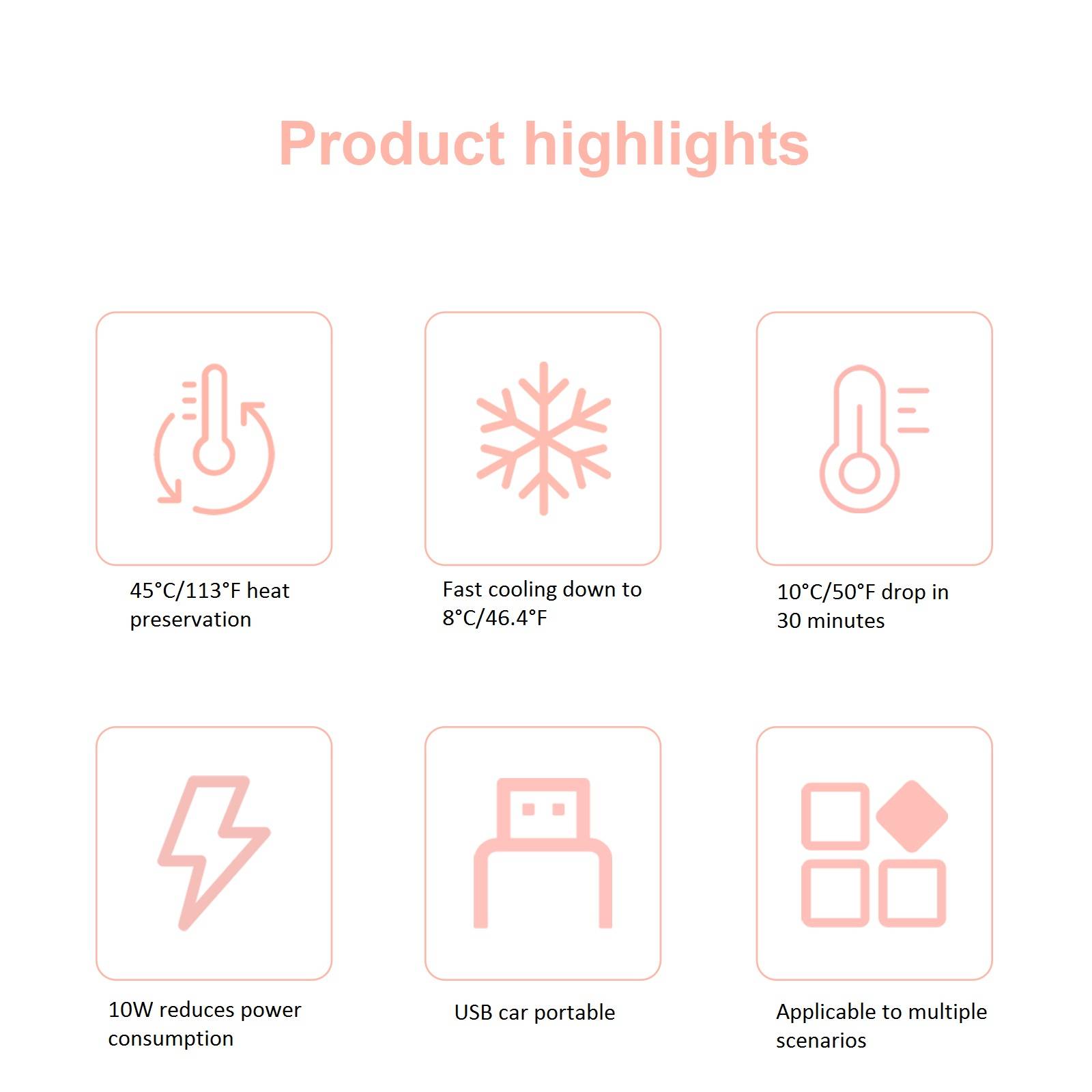 USB портативная теплая и холодная чашка, прохладная летняя/теплая зима. Быстрое охлаждение до 8 °C/46,4 °F, 45 °C/113 °F сохранение тепла.