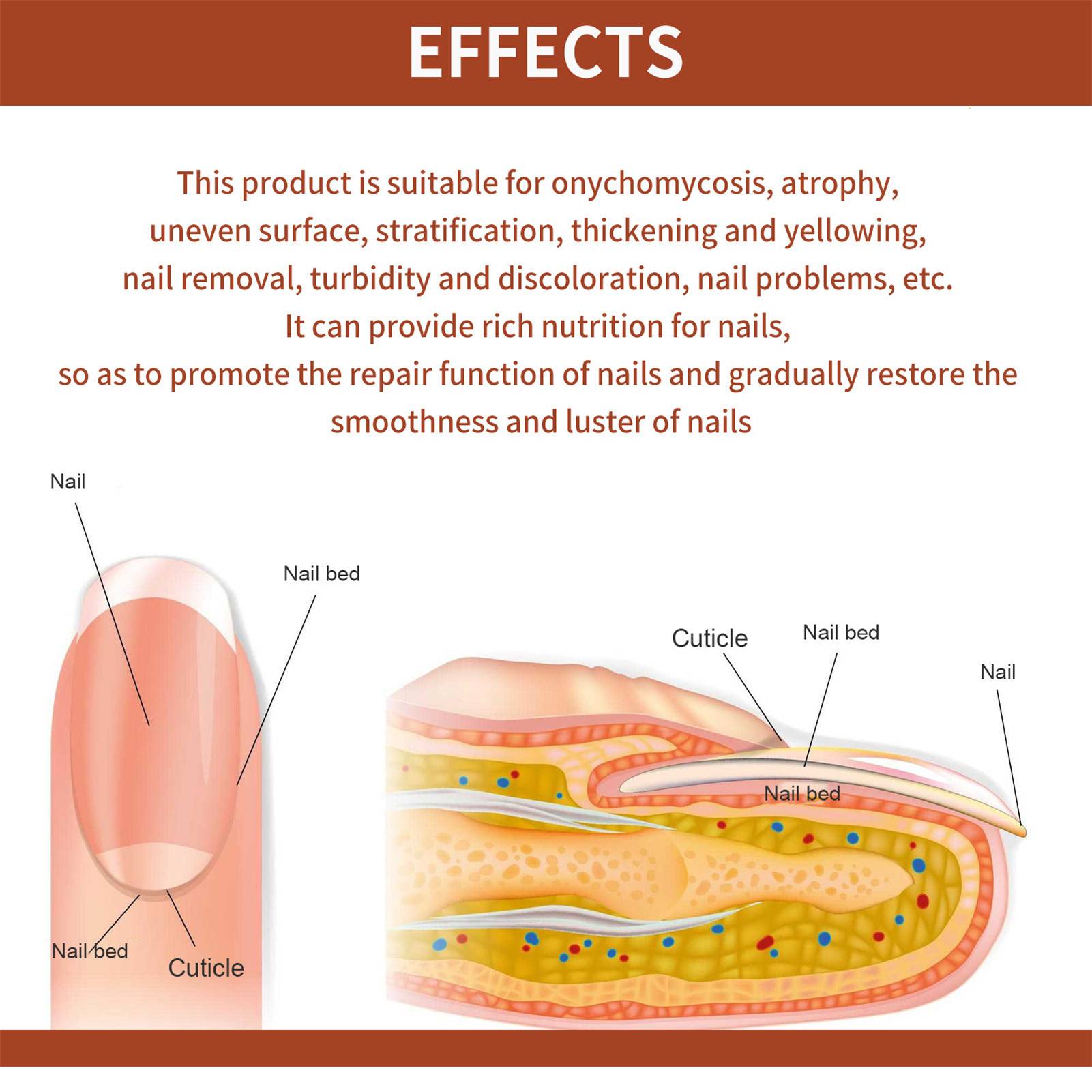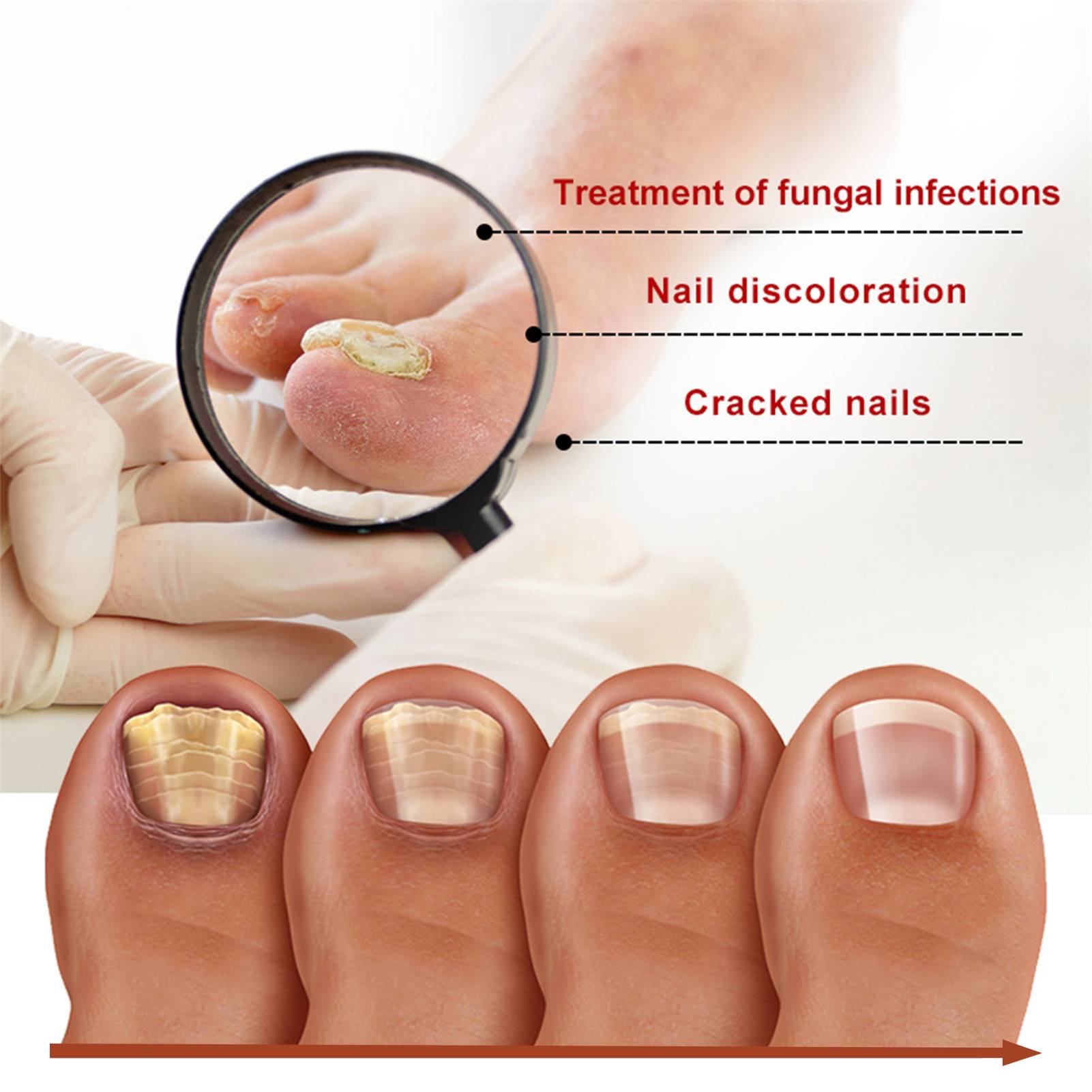 1. Этот продукт содержит экстракт жимолости, который лечит онихомикоз, вызванный усадкой, неровным, утолщением, разрывом, пожелтением, падением и т. д.
