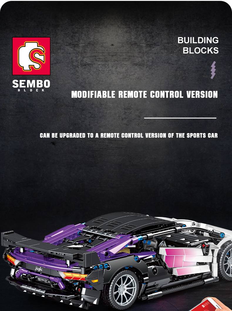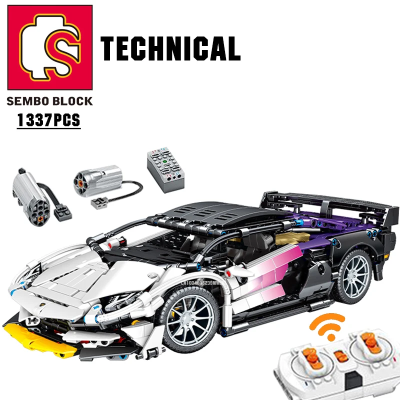 SEMBO BLOCK 1337 шт., строительные блоки для спортивных автомобилей, стебель, пульт дистанционного управления, Коллекционная модель, комплекты для автомобилей, суперкар, кирпичи для детей