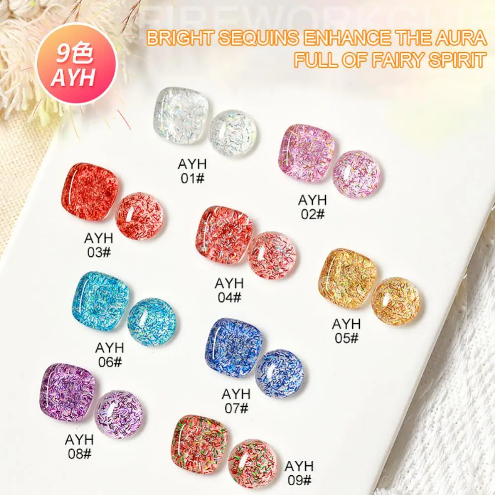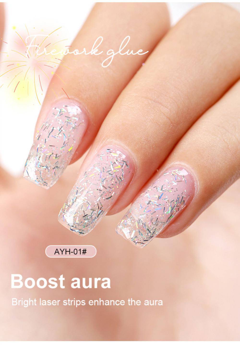 [Creative DIY] прозрачный гель имеет яркую лазерную ленту, которую можно окунуть любым цветом фона, чтобы создать уникальную форму ногтей.