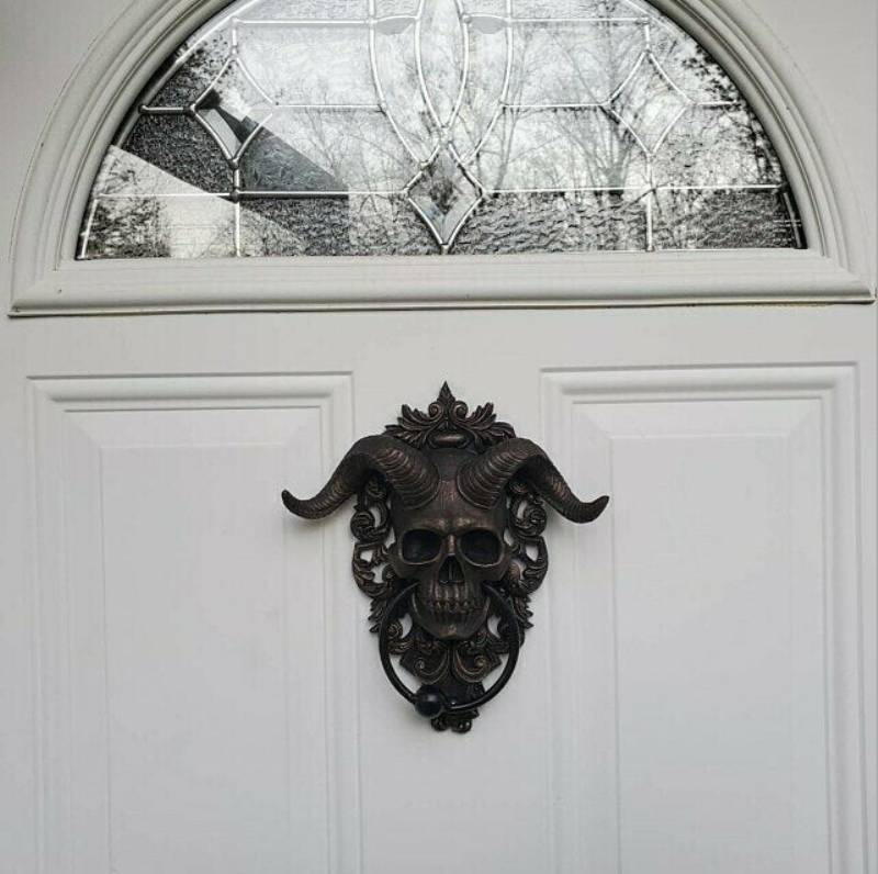 1. Материал смолы: Этот дверной молоток с рогатым черепом изготовлен из полимерного материала s, расписанный вручную. Отличное дополнение к вашей входной двери.