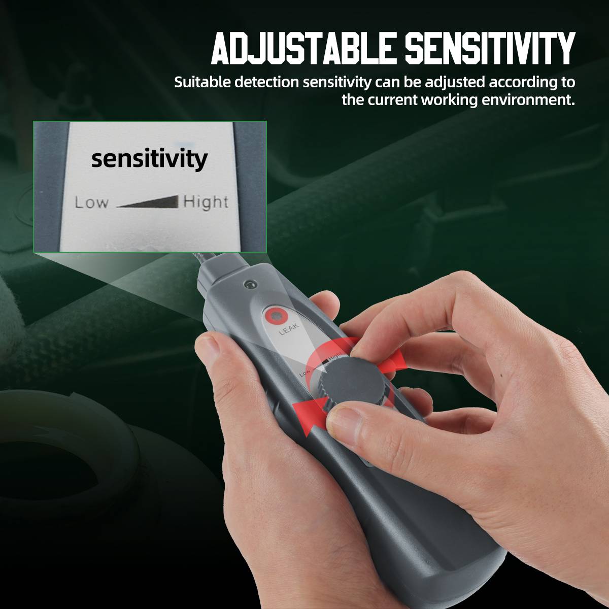 Обнаруживает любые утечки газа под давлением, включая хлорфторуглерод (ХФУ), гидрофторуглерод (ГФУ), азот (Ni), углекислый газ (CO2) и пар.