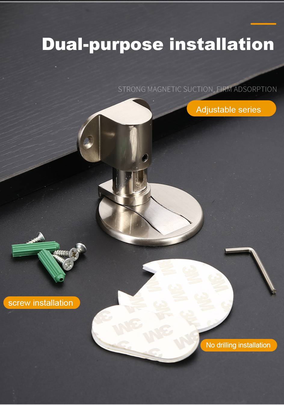 [Два способа установки] посылка для остановки двери поставляется с двухсторонней клейкой лентой из 2 предметов и крепежными винтами из 4 предметов, вы можете использовать липкие прокладки на дверных и настенных секциях без сверления. Кроме того, вы можете установить с помощью винтов, если вы хотите сделать установку более постоянной. Магнитные дверные стопоры можно установить вертикально к полу или горизонтально к плинтусу или стене.