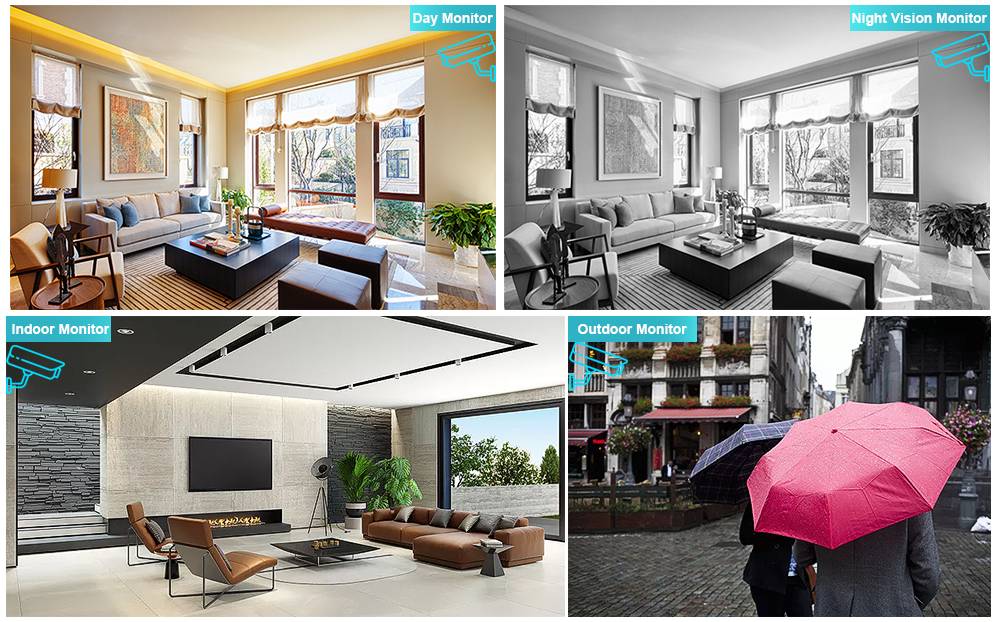 Используйте их в качестве наружных камер или крытых камер, так как они построены жестко, выдерживает любую погоду: дождь, снег, пыль и жаркие дни. С защитой от атмосферных воздействий IP66 и кабелями, просвечивающимися через подставку для защиты, гарантируем, что вы сможете ответить на их производительность, день в день. Наша камера имеет сверхпрочный металлический корпус, профессиональный IP66, устойчивый к атмосферным воздействиям, обеспечивая стабильную производительность как внутри, так и снаружи.