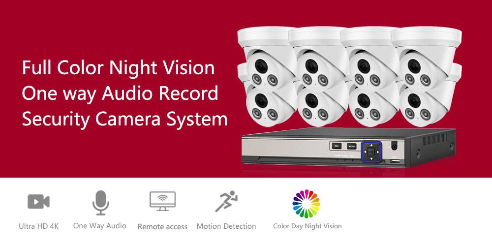 8MP 4K POE NVR комплект 8MP односторонняя аудио наружная цветная камера ночного видения CCTV система видеонаблюдения IPC камера безопасности