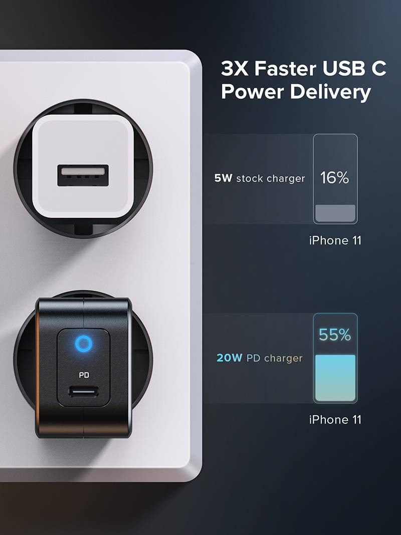1. Мощный выход 20 Вт заряжает ваш новый iPhone на 0% до 60% всего за 30 минут.