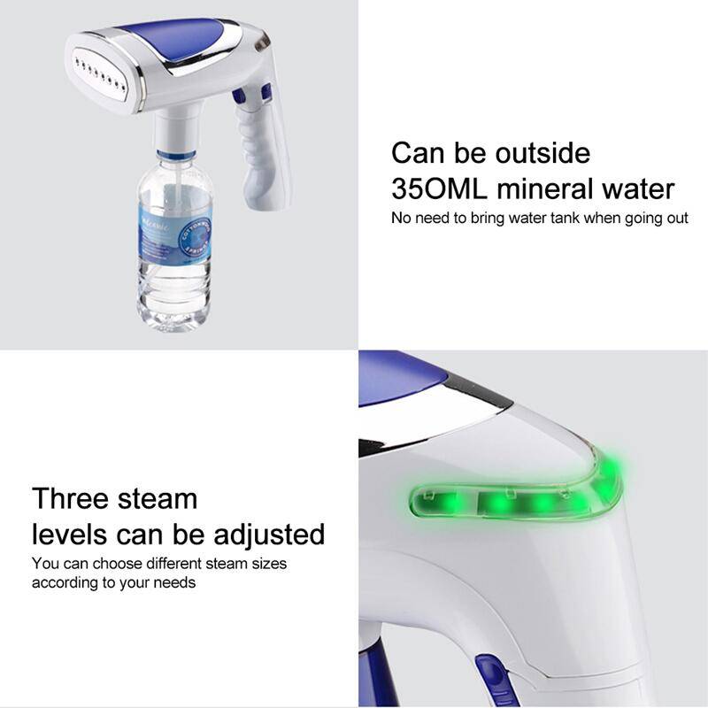 В дополнение к большому резервуару для воды объемом 250 мл гладильная машина может быть подключена к бутылке с минеральной водой объемом 350 мл для удовлетворения потребностей всей семьи в глажке, И это удобно, чтобы не носить резервуар для воды во время путешествия.
