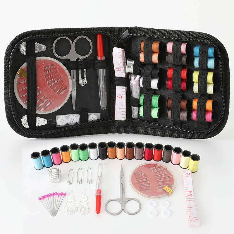 Катушка X24, threader X1, увеличительное стекло X1, 30 игл игольчатой пластины X1, вязальная игла X1, свитер иглы X1, карандаш X1, резец резьбы X1, ножницы X1, рулетка X1, скрытая Пряжка X4, жемчужная игла X40, белая Пряжка X3, черная Пряжка X3, булавка X5, Thimble X2, шприц иглы X10, эластичный зажим X1, зажим для бровей X1, клипер для ногтей X1