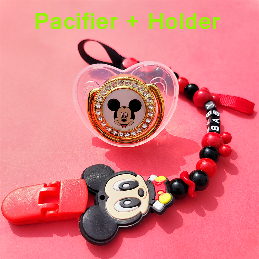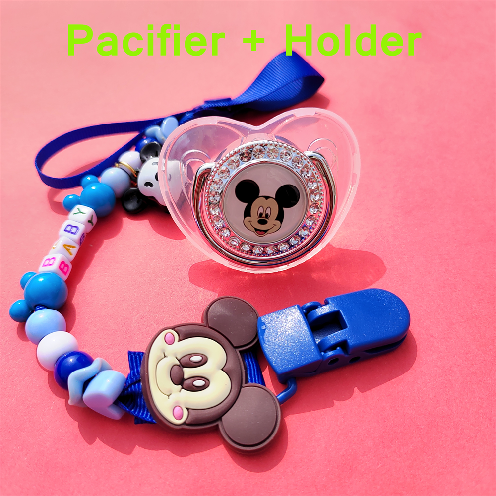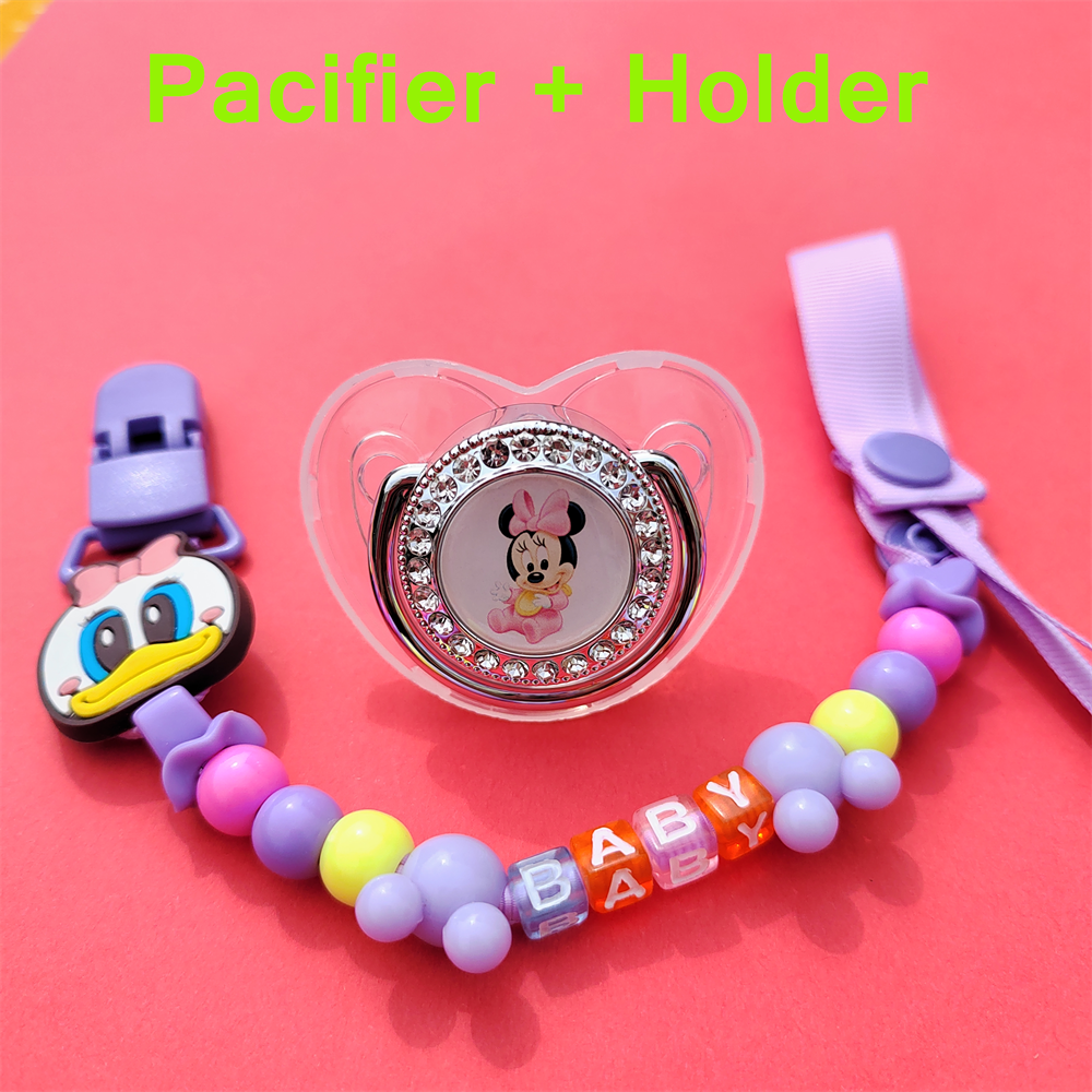 Hot Sale Stitch Transparent Baby Bling Dummy with Pacifier Clip Cartoon Character Image Soother with Chian Baby Sucking Chew Toy