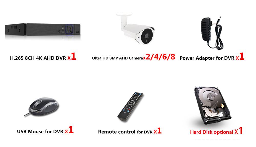 2/4/6/8 x HD 8.0MP indoor outdoor IR Day Night vision weatherproof cameras;