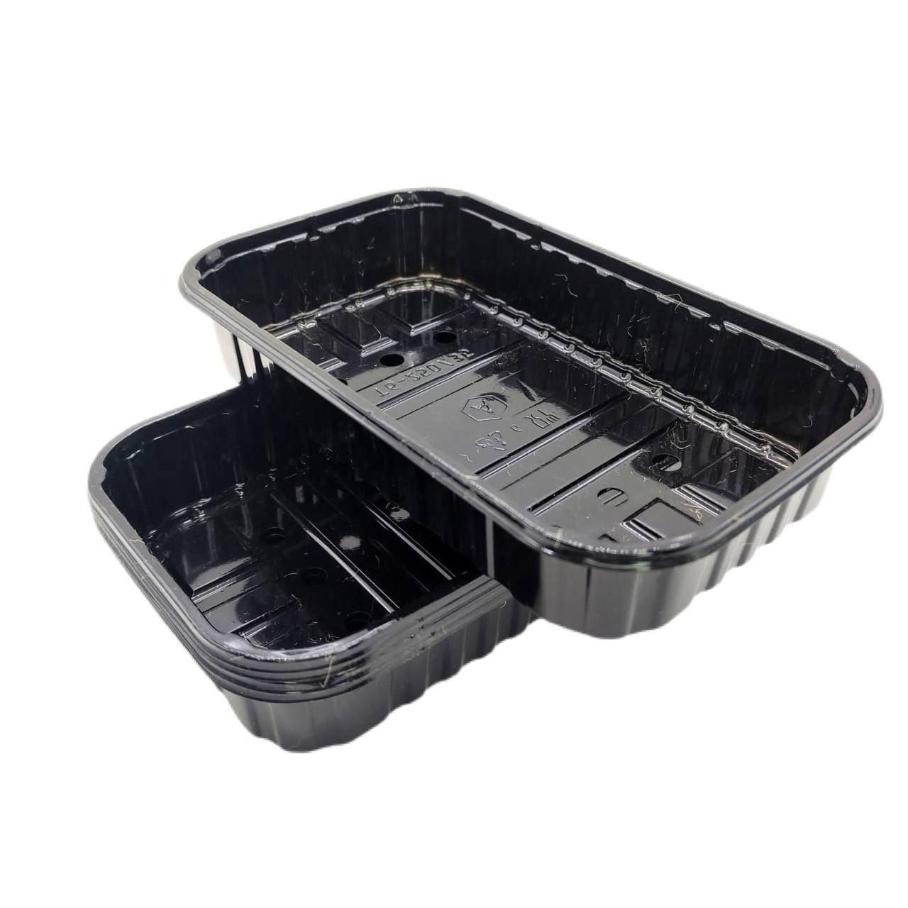 Набор из пластиковых лотков черного цвета 190*115*35мм с 6 отверстиями. 50 штук. Отлично подходит для выращивания микрозелени и фасовки ягод (клубника, малина, голубика, ежевика) по 250 грамм