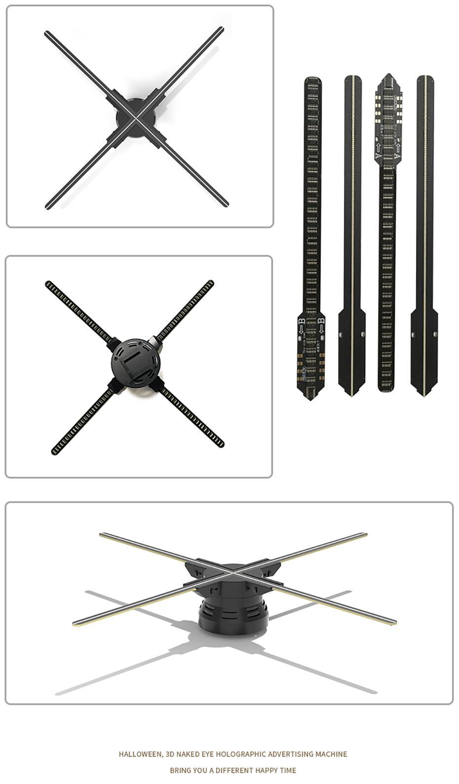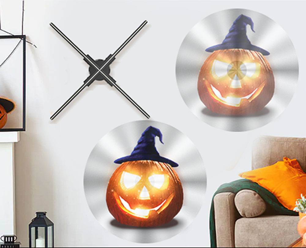 Яркий регулируемый: яркость 3D голограмма вентилятора можно регулировать. В соответствии с вашими требованиями, вы можете настроить яркость рекламы проектор с помощью приложения.