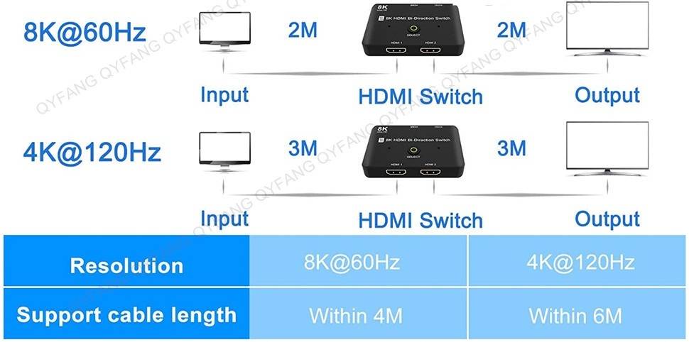 1. HDMI-совместимый двусторонний коммутатор, 2 в 1 out/1 в 2 out.