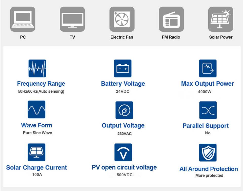 Солнечный инвертор 3500W 3.5KVA DC 24V AC 220V 230V инвертор 100Ah 50Hz зарядное устройство ток для дома панели солнечных батарей Комплект системы
