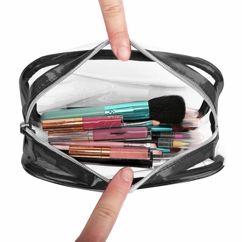 Прозрачная прочная толщина-изготовлен из прозрачного ПВХ-материала, экологически чистый, чтобы быстро увидеть и получить товары. Прочная толщина делает сумку более прочной и легкой в чистке, ее можно использовать повторно в качестве прозрачной косметички или косметички.