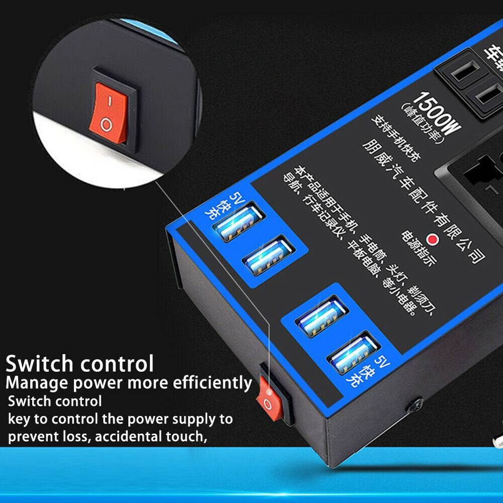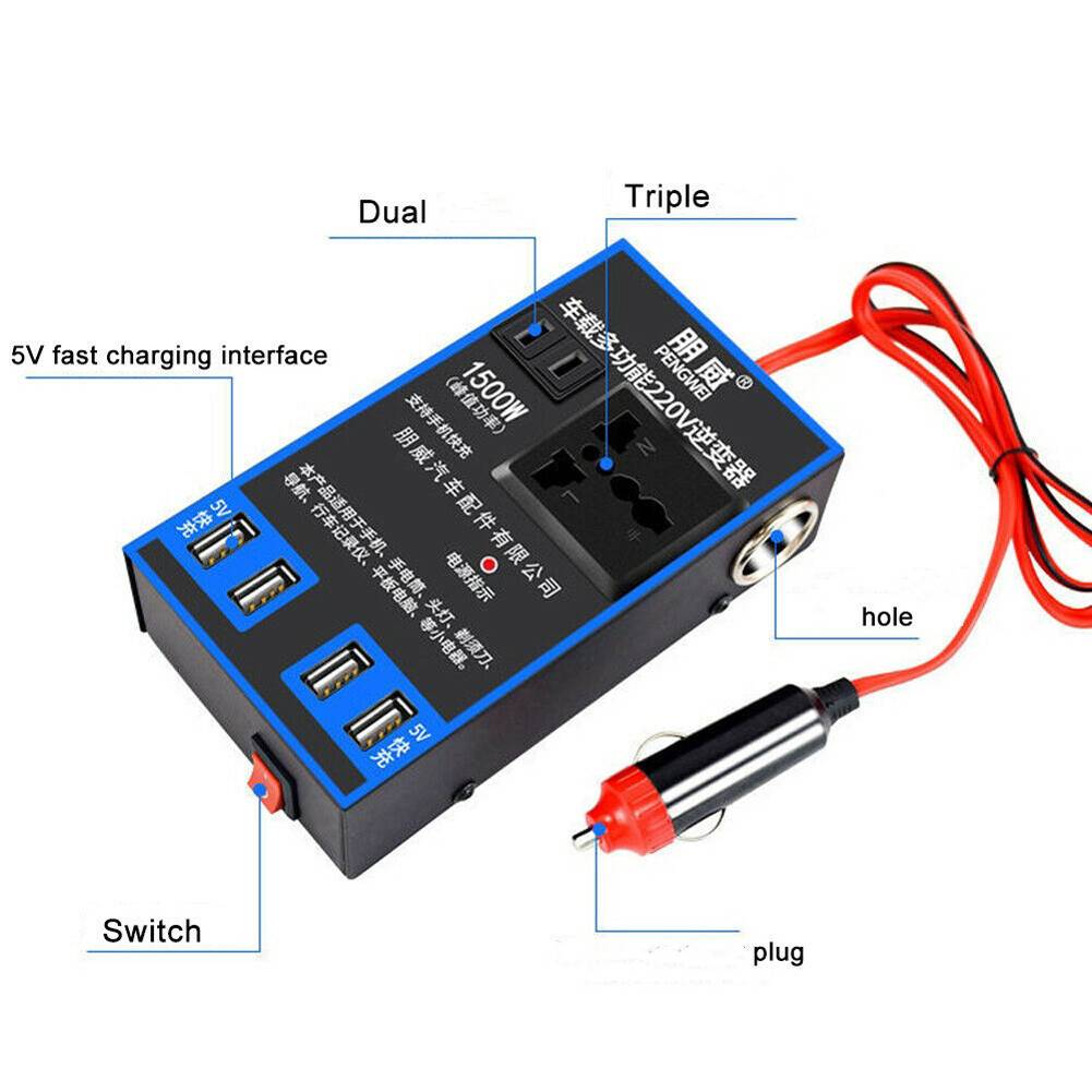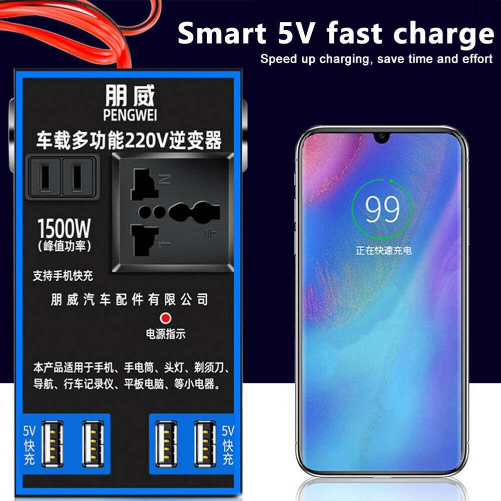 * Многофункциональный автомобильный инвертор, который поддерживает быструю зарядку мобильных телефонов, с собственным высоковольтным гнездом, 4 USB быстрое гнездо зарядки и 2 гнезда прикуривателя.