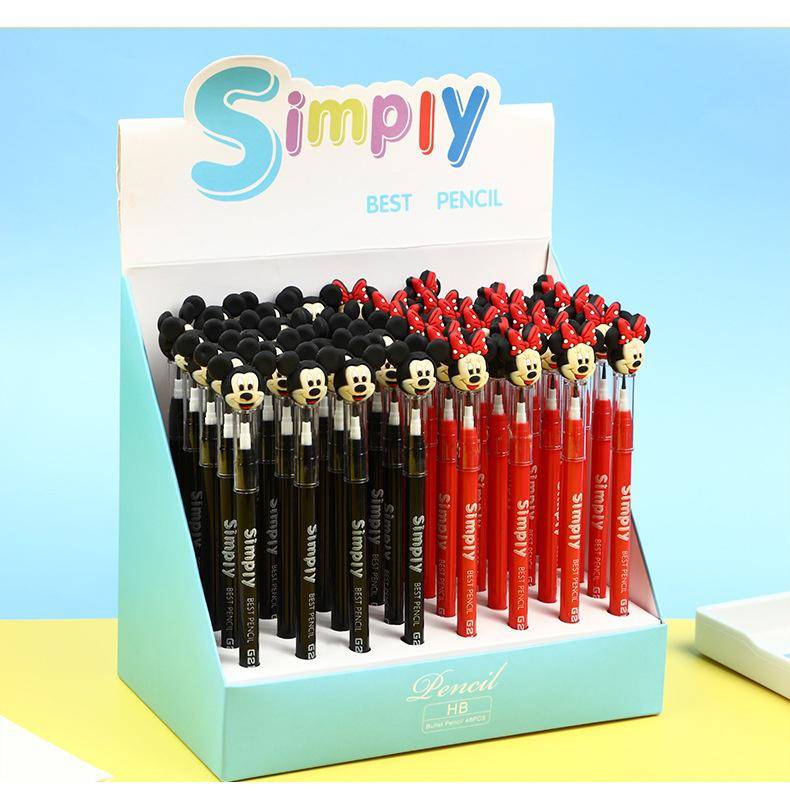 48 шт Дисней мультфильм карандаш механический пополнения Бесплатный карандаш дисплей коробка Микки Маус детей обучения школы письма поставки